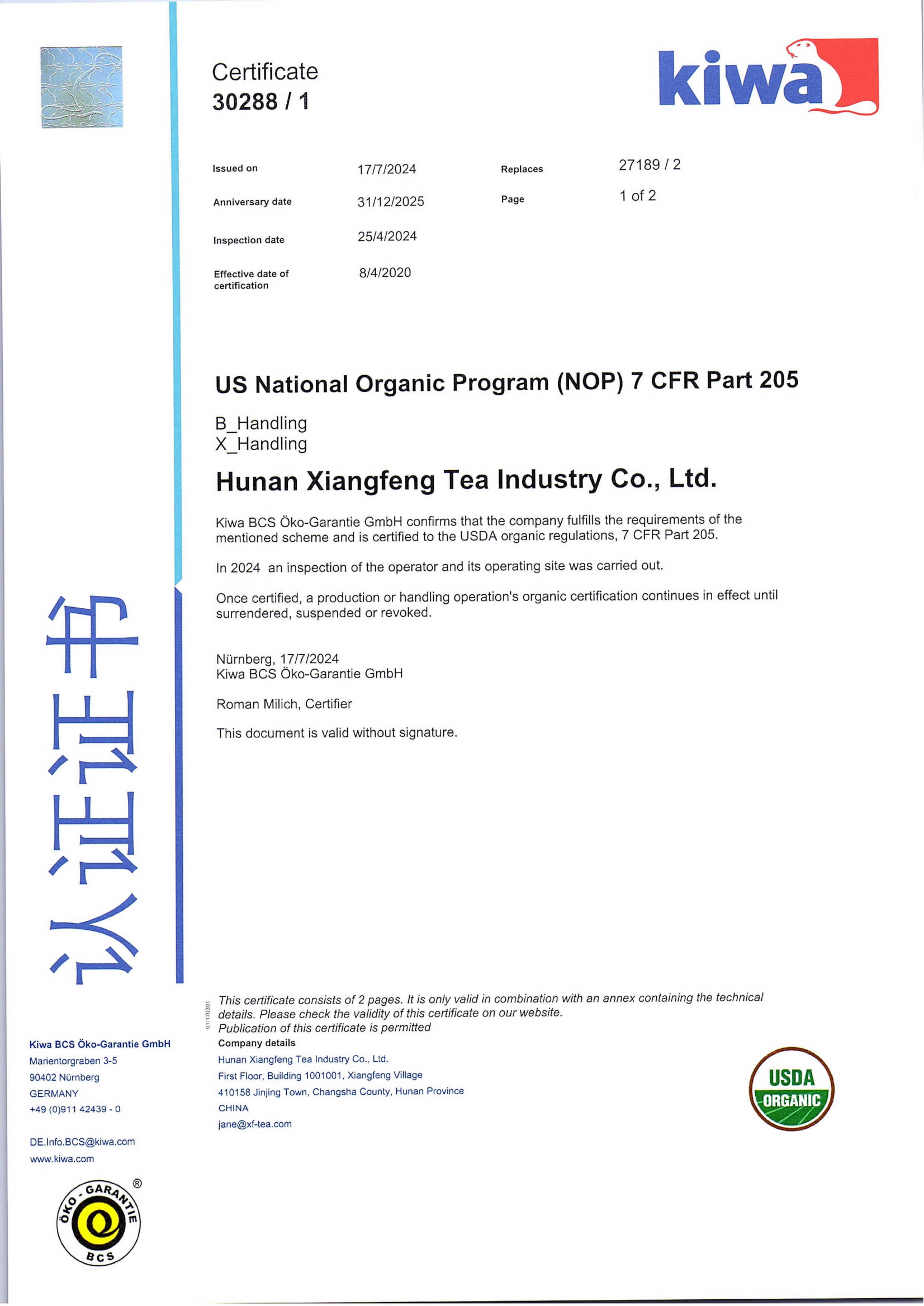 美国有机认证